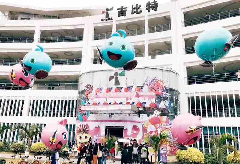 12月15日,,为了庆祝《不思议迷宫》一周岁生日,,冈布奥们准备了众多花式庆生活动::厦门LEWIN乐玩大楼变身巨型蛋糕、、女仆小姐姐为大家奉上美味小蛋糕、、、、更有大头冈布奥飞上天……引来不少冒险者身亲临现场为冈布奥打Call!!